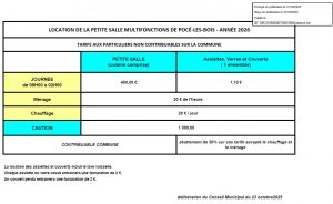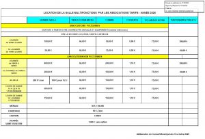 Le tableau de tarifications est établi chaque année par délibération du conseil municipal. Visites sur rendez-vous.