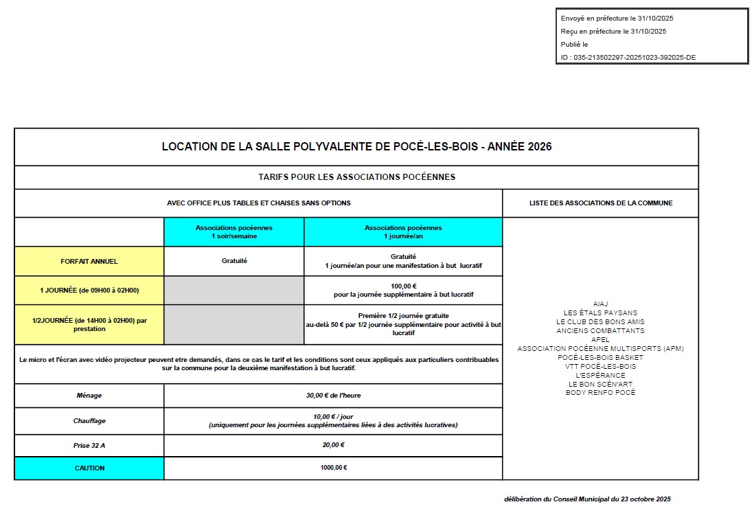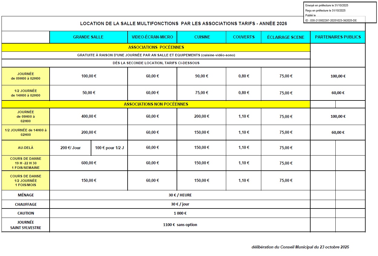 La Commune met à disposition des associations pocéennes ou extérieures, des partenaires publics, et des contribuables / non contribuables de la commune, deux salles : la salle « MULTIFONCTIONS » et la salle « POLYVALENTE ».