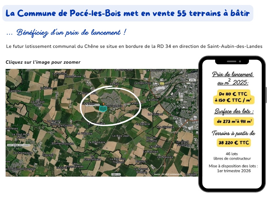 Pour toute question et/ou demande de renseignements complémentaires relative(s) au lotissement communal du chêne, vous pouvez contacter le secrétariat de mairie au 02 99 75 21 52 ou par mail à mairie@pocelesbois.fr